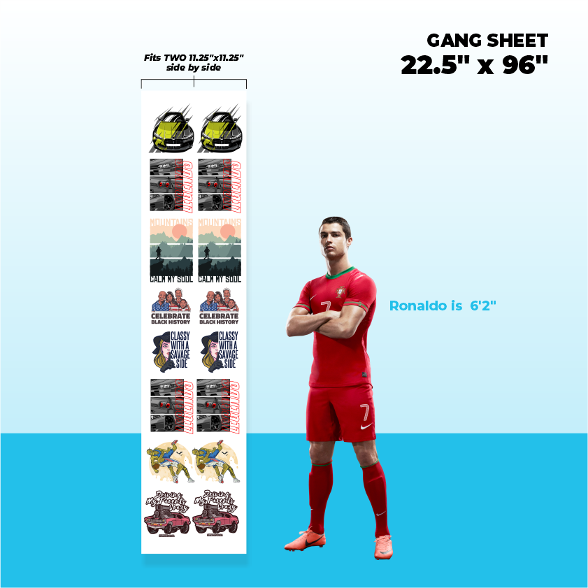 Save more with our budget-friendly DTF Gang Sheets, ideal for your pre-designed artwork.
